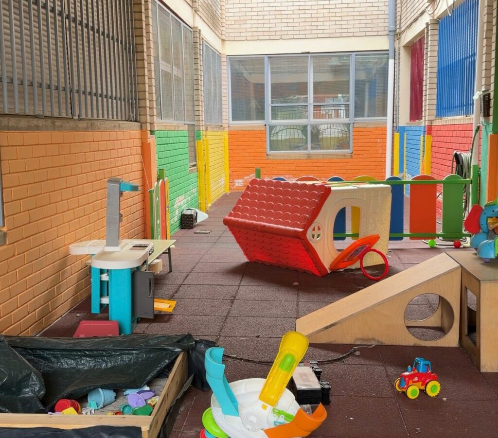 Este pasado martes, alumnos y profesores regresaban tras las vacaciones de Semana Santa, encontrándose innumerables muestras de vandalismo como ventanas con cristales rotos, puertas rotas y desencajadas, juguetes tirados por todo el interior del patio e incluso vallas policiales colocadas en vertical para ser usadas como escaleras, llegando a entrar en alguna sala del colegio.