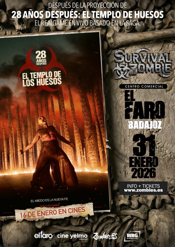 El evento comenzará a las 22:00, con la proyección de una de las películas más esperadas del año para los fans de los zombies: ‘28 Días Después, El Templo de los Huesos’. Aunque no es obligatorio ver la película para participar en la experiencia posterior, la organización recomienda vivir la experiencia completa, ya que, el visionado de la película te mete desde el principio en dinámica para pasar una noche muy intensa. Además, la propia experiencia se basa en la saga de películas ’28 Años’, donde habrá «muchos giros y sorpresas».