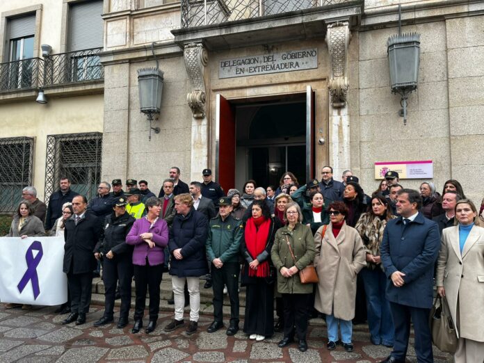 Esta mañana ha tenido lugar el minuto de silencio frente a Delegación del Gobierno por Carmen, la mujer de 78 años que ha sido la primera fallecida por violencia de género en Extremadura este 2026.