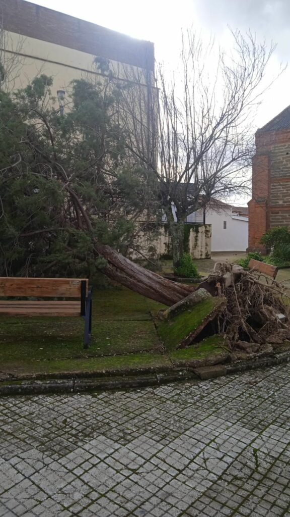 La borrasca Kristin ha dejado a su paso por Extremadura múltiples incidentes, no ha sido menos en el caso de Cedillo, pueblo en el oeste de Cáceres, donde las rachas de viento superaron los 100km/h según el alcalde Antonio González.