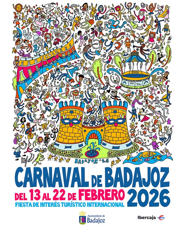 Hoy se ha presentado el cartel del Carnaval de Badajoz, el cual ha sido descubierto por el concejal Casablanca y la autora de dicha obra, Teresa Solo de Zaldívar.