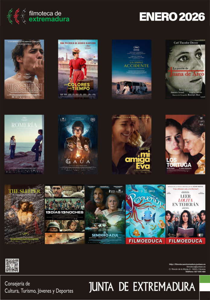 La programación completa, con fechas y sedes concretas, puede consultarse a través de los canales oficiales de la Filmoteca de Extremadura o en este enlace https://www.juntaex.es/documents/77055/45546389/DOSSIER_FilmotecaEnero26_1.4_prensa.pdf/8e02060f-0088-bf4d-d1af-172ab1c65e9d?t=1767775111097