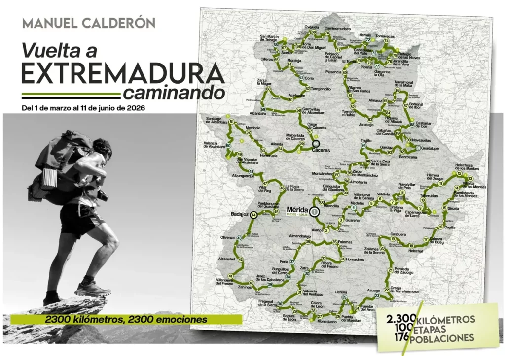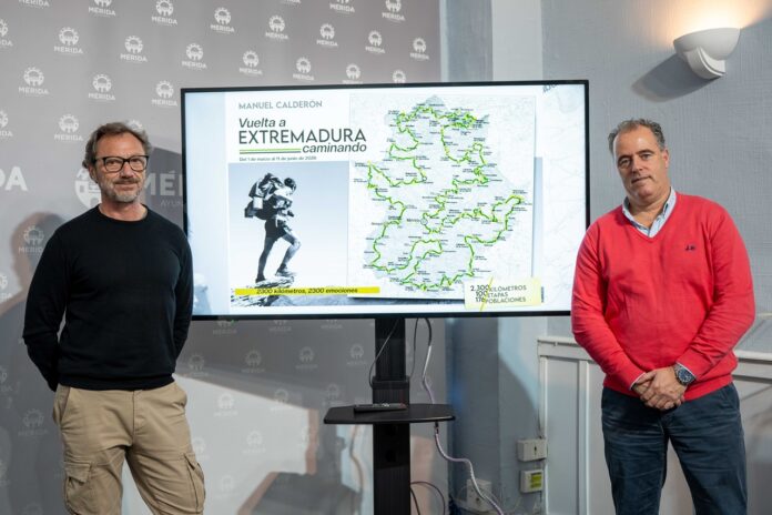 100 días tiene el senderista, Manuel Calderón, para recorrer los 2.300 kilómetros propuestos para la nueva prueba que ha presentado junto al delegado de deportes, Toni Marín. Esta larga caminata, tiene como fin descubrir Extremadura prácticamente al completo, pasando por hasta 176 poblaciones.