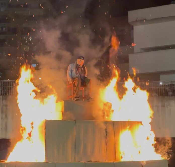 seguridad del disfrute del público. Las llamas pronto alcanzan varios metros de altura, y tan pronto